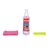 نظافت، پاکیزگی و آراسته نگهداشتن ابزار و لوازم، هم در محل کار و هم در منزل اهمیت بالایی دارد. برای این کار کافی است از یک محلول تمیزکننده و یک دستمال تمیز استفاده شود. لوازم صوتی تصویری، تجهیزات الکترونیکی، کامپیوتر، لپتاپ، تلویزیون و نمایشگرها، به دلیل حساسیت و قیمت بالایشان، نیازمند توجه و اهمیت بیشتری هستند. مسلما کار صحیحی نیست که برای تمیز کردن دستگاههای دیجیتالی به ویژه صفحهنمایشها، از دستمال و تمیزکنندههایی استفاده شود که برای نظافت لوازم منزل به کار میروند. این محصول برای تمیز کردن نمایشگرهای LED و LCD و TFT مناسب بوده و شامل یک اسپری تمیزکنندهی غیرالکلی به حجم 200 میلی لیتر و دو دستمال مخصوص است. کافی است محلول تمیزکننده را بر روی سطح موردنظر اسپری کرده و سپس آن را با دستمال پاک کنید. شاهد خواهید بود که هیچگونه لکه، اثرانگشت یا ردی از آلودگی بر روی سطح باقی نخواهد ماند. از این محصول میتوان برای نظافت صفحهنمایش لپتاپ، تبلت، گوشیهای موبایل و حتی عینک استفاده کرد.