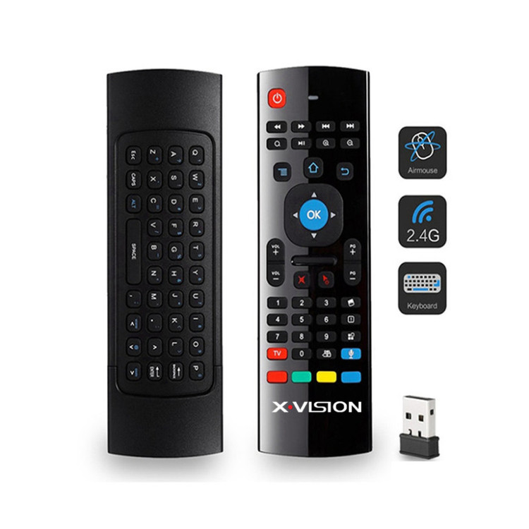 مناسب برای تمامی تلویزیون های هوشمند ایکس ویژن دارای فرکانس کاری 2.4 گیگا هرتز دارای سنسورهای سه و شش محور دارای میکروفون برای ورودی صوتی فاصله پاسخ گویی 15 متری به همراه کاتالوگ راهنما پشت ریموت دارای کیبورد جهت تایپ همراه با دانگل